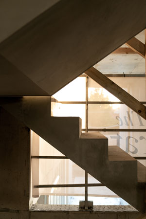 Showcasing the central open concrete stair connecting all