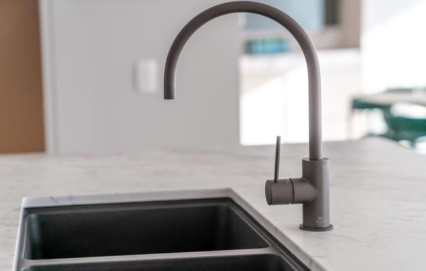 Phoenix gooseneck kitchen tapware in gunmetal finish